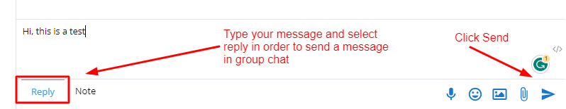 In order to send a reply, click on the “reply” window and click on send to send icon on the message