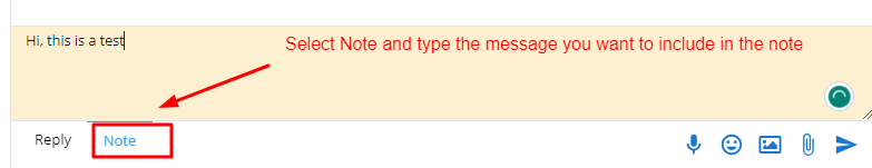 In order to send a note, click on the “Note” window and click on the send to send icon the note.