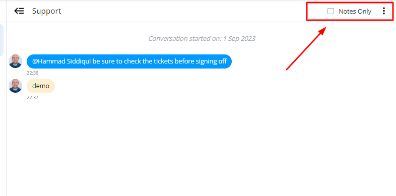 You can also filter the conversation to notes only by clicking on the tick box above.