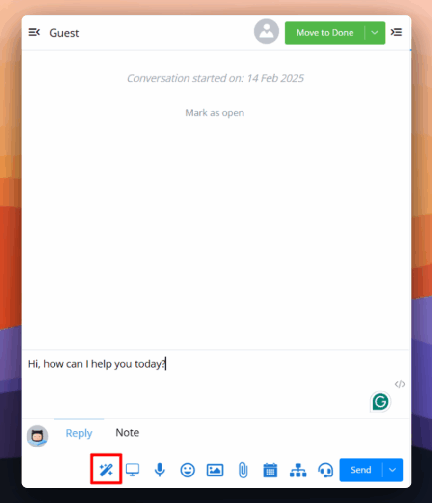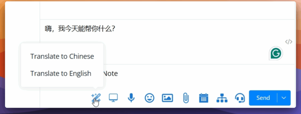 Example: Translating “Hi, how can I help you today?” to Chinese can be done with just a few clicks, eliminating the need to switch between tabs or use external translation tools.