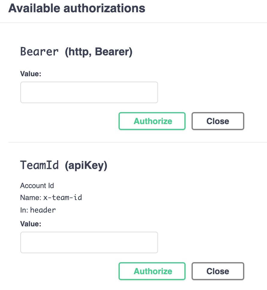 Since the protection of the data is important to the API, it needs to use several attribute to authorize your identity. Therefore, the first step you must do is to enter the authorized information. You need to click the Authorize button, as the following figure shown.