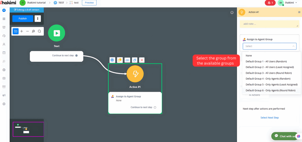 You can streamline chat management by assigning interactions directly to specific agents or agent groups within the flow. Here’s how: