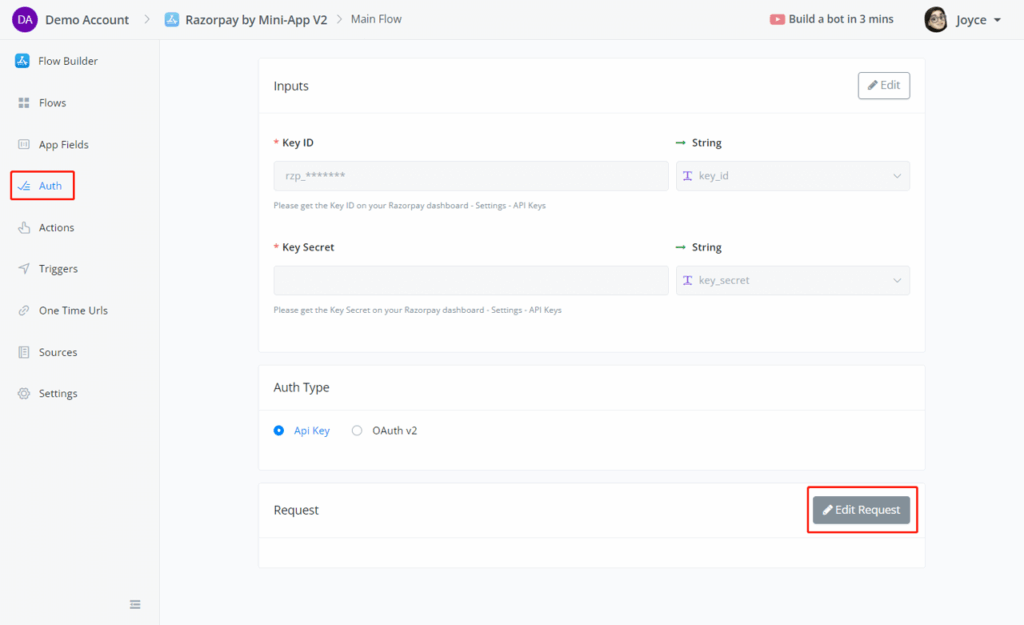 Mini-App V2 system support 2 types of authentications, Api Key and OAuth v2.