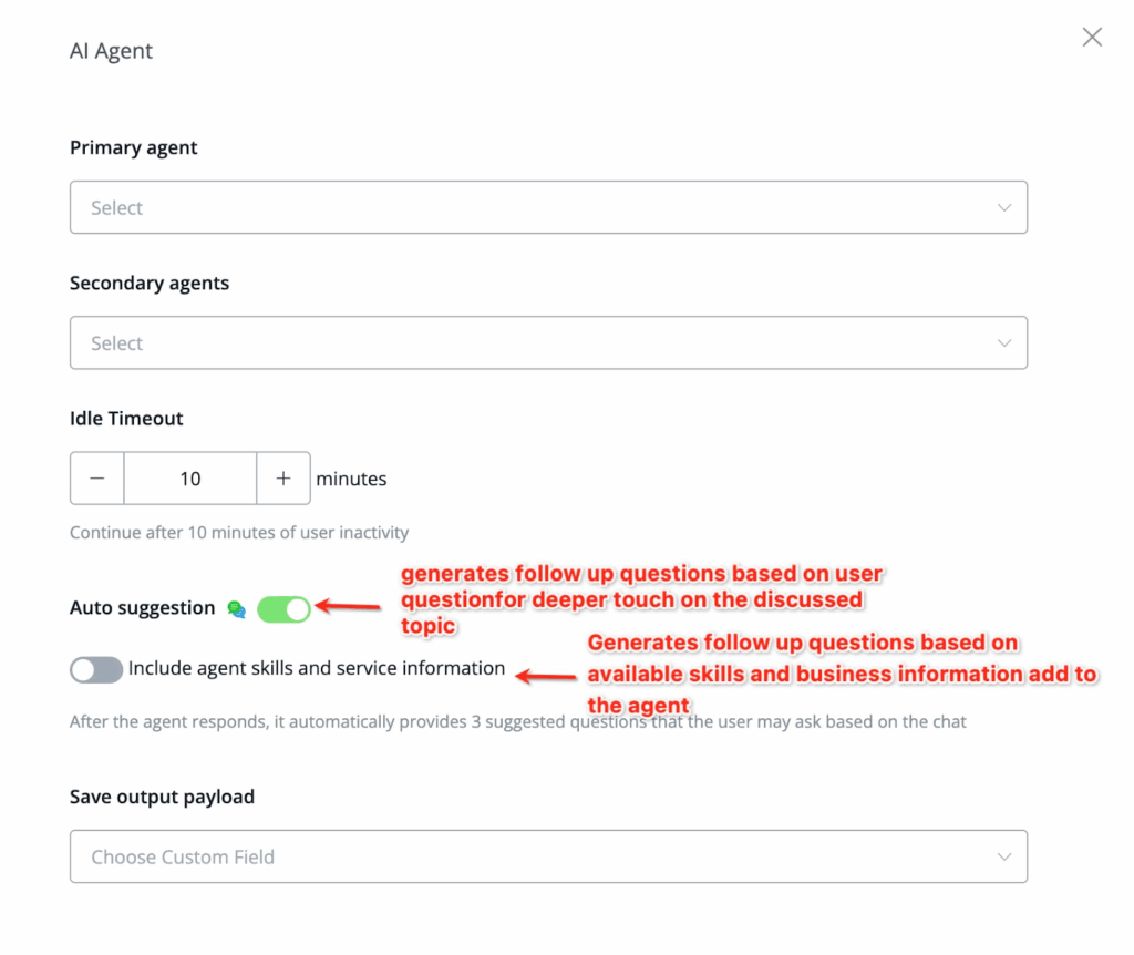 - Enhances follow-up suggestions by incorporating the agent’s predefined skills and business-related data.
