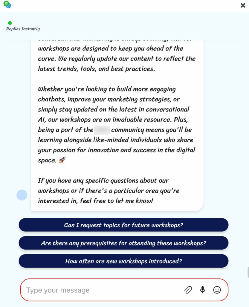 The AI agent on the webchat channel now has the ability to suggest follow-up questions based on user interactions.