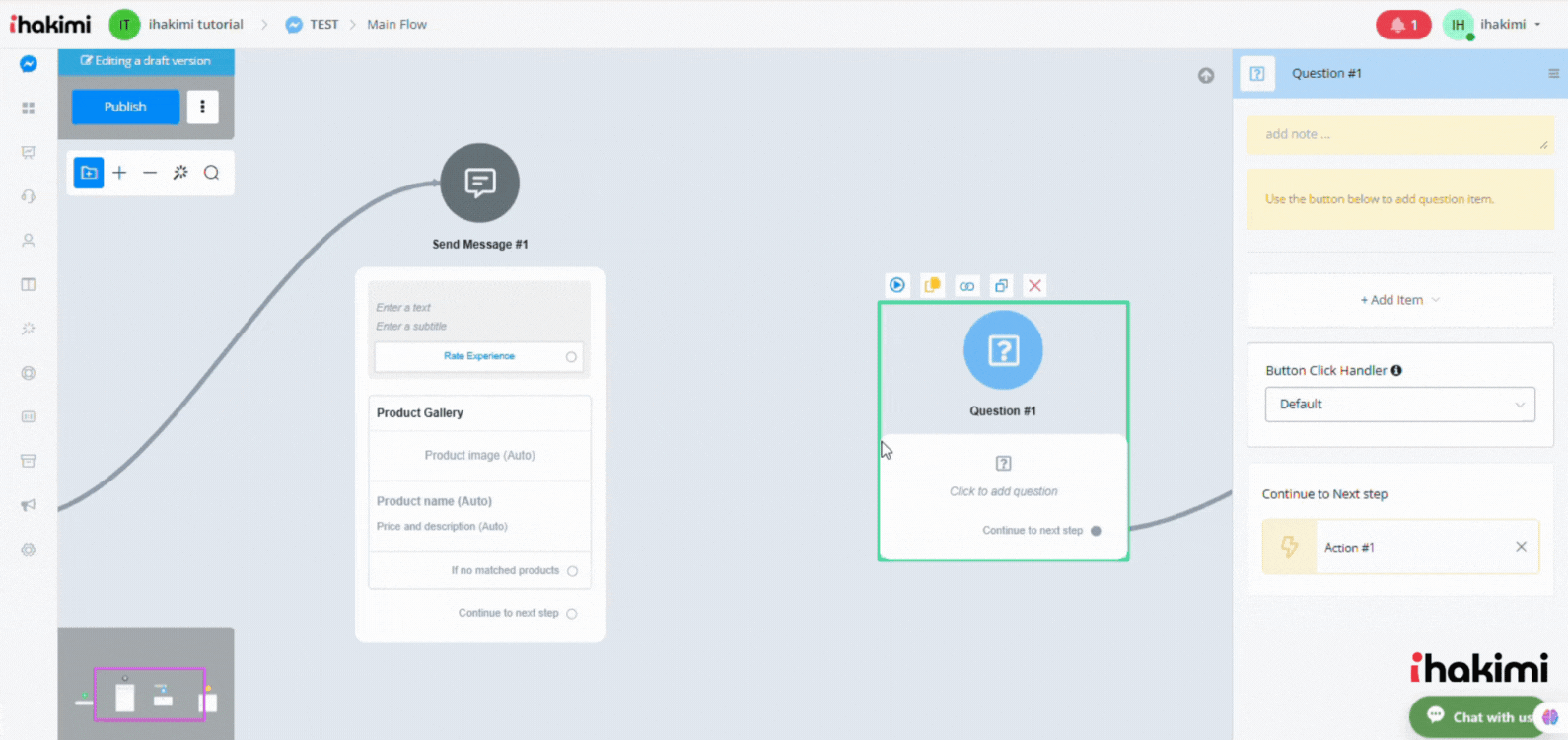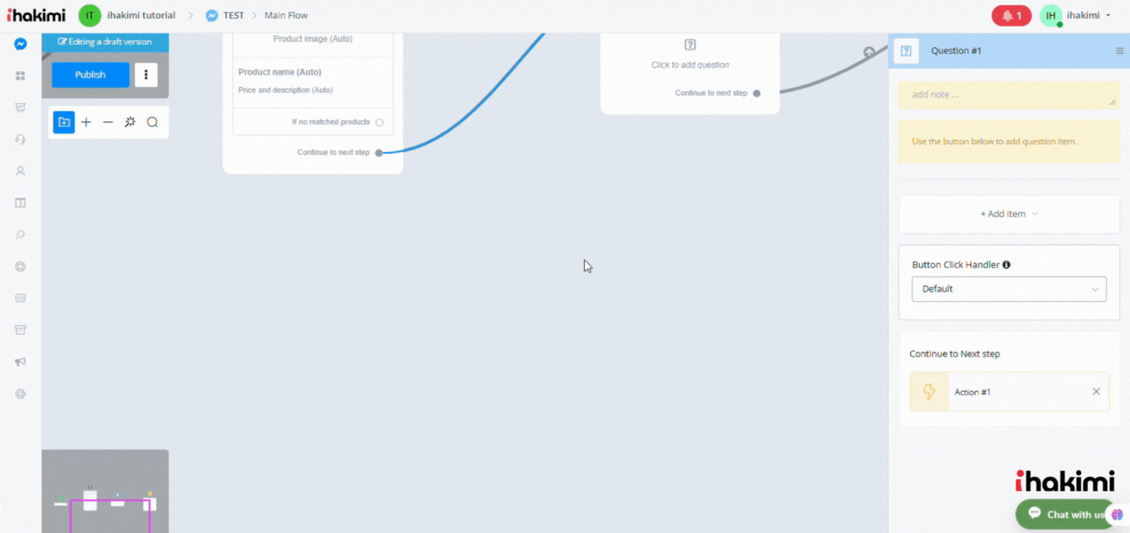 Click step name to edit it. You can choose the next step at the bottom of the edit panel or drag connectors from the circle to the tile of another step.