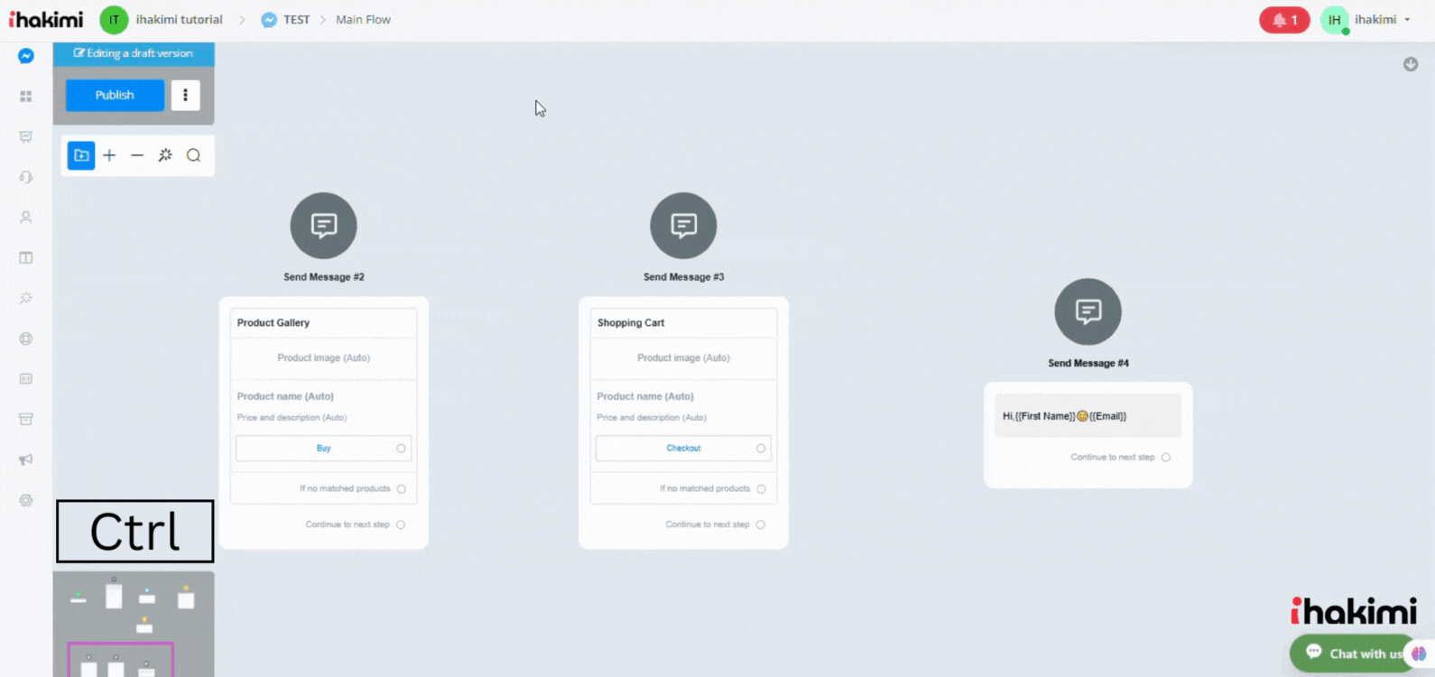 We’ve just learned how to move the builder by clicking and dragging. For selecting multiple steps, it’s a bit similar. Hold the Shift key then click and drag to cover the steps you would like to select: