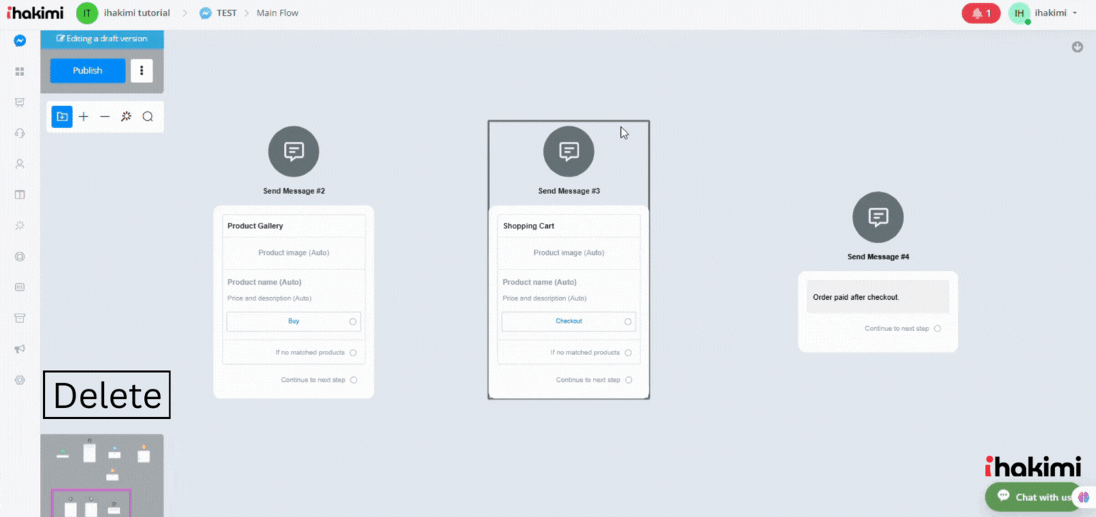 Delete on Mac – On Mac OS computer, hold fn and hit Delete to remove steps. Or use the “Delete Selected button in the editing panel.