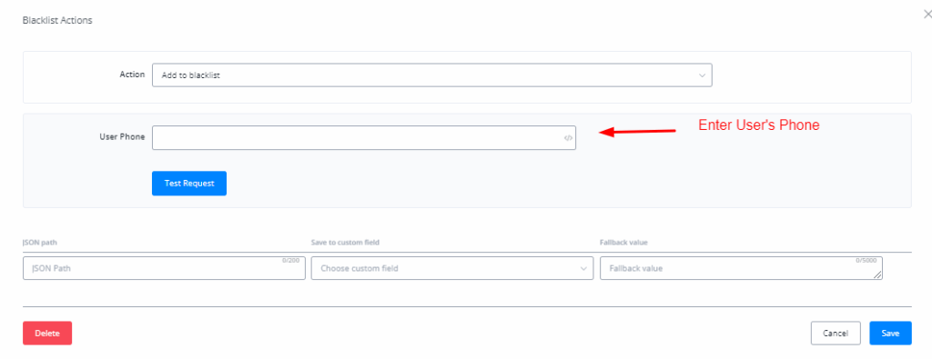 This action is used to search for users which are already present inside the blacklist using their phone numbers.