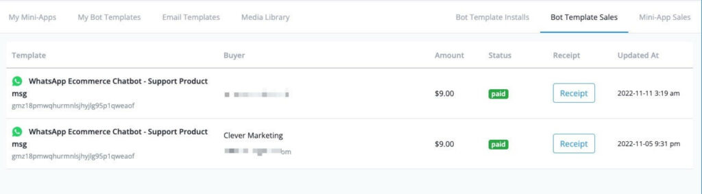 If you have published paid template, and the template have purchase history.