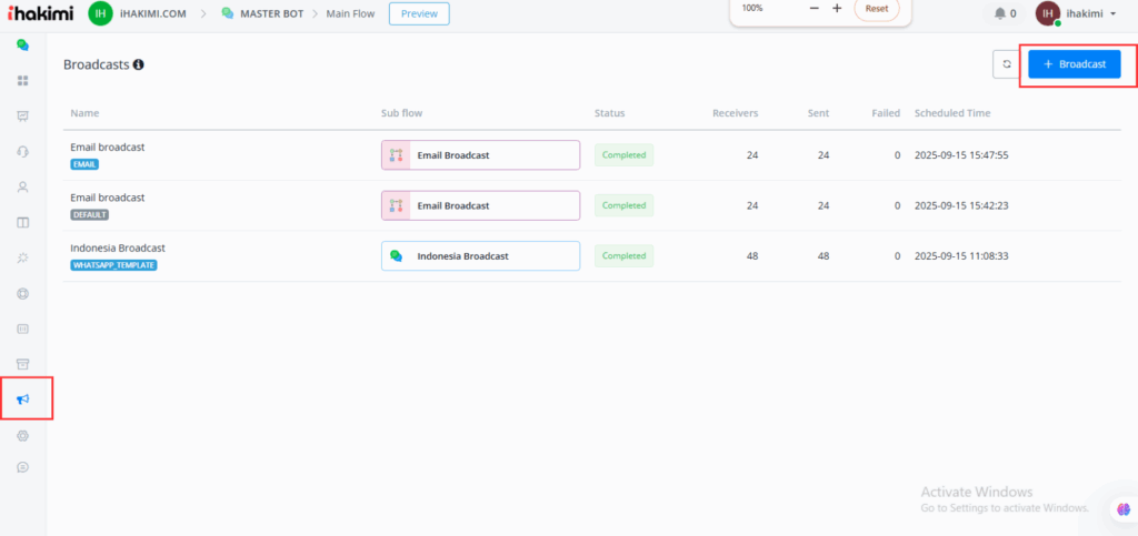 This feature is especially helpful if you want to avoid sending the broadcast too quickly to a large number of users. By slowing the process down, you can make the communication appear more gradual and humanized, improving the user experience.