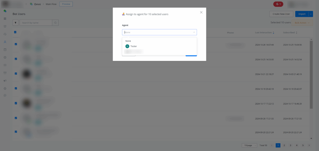 This bulk assignment option is ideal for managing large numbers of users at once, streamlining the process of assigning agents to multiple users simultaneously.
