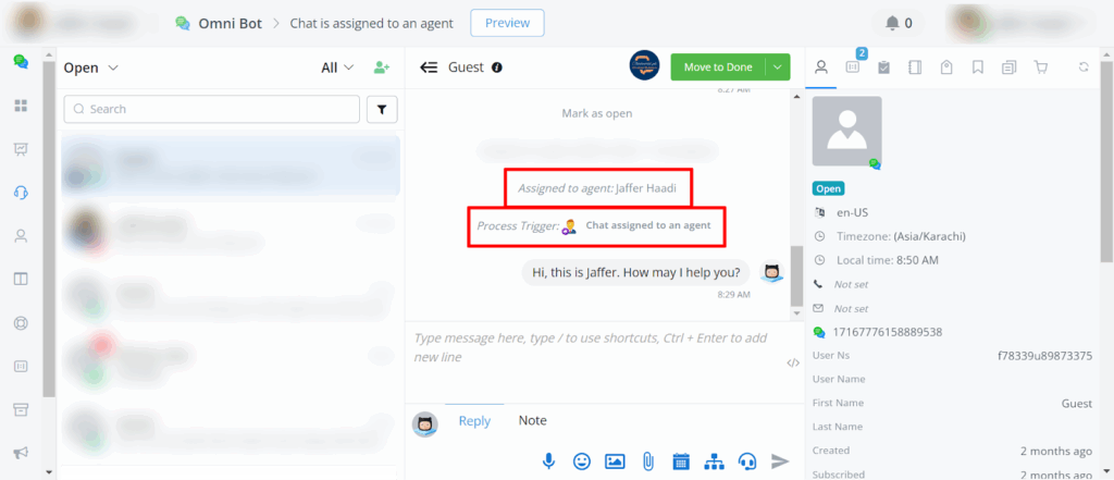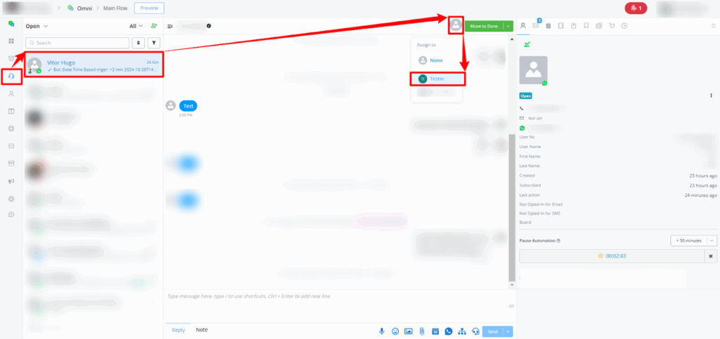 - In the conversation panel on the right, locate the Assign to Agent option.