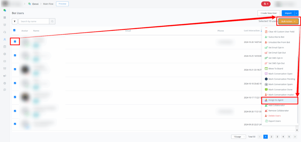 This section explains how to assign a live chat agent to a bot user via the Live Chat Interface or Bulk Action through the Bot Users section. These steps enable better control over agent assignment.