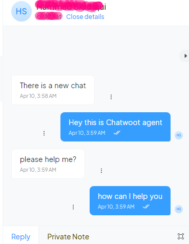 And you should be able to send the messages to the user from Chatwoot livechat