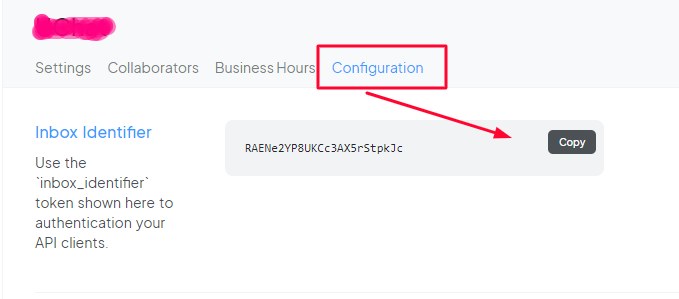 Click on the configurations tab and copy the Inbox identifier