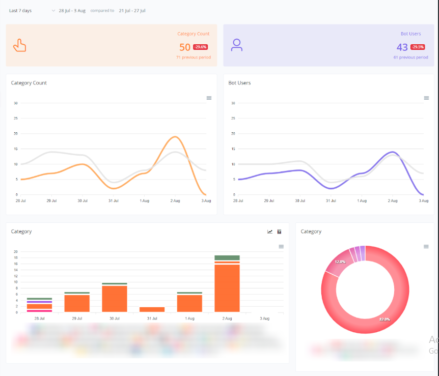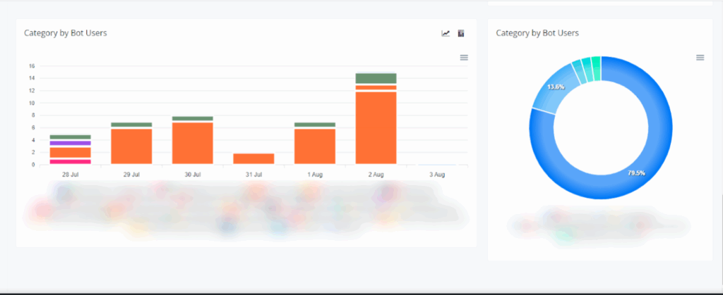 • Purple and Gray Lines: Represent the number of bot users in the current and previous periods, respectively.