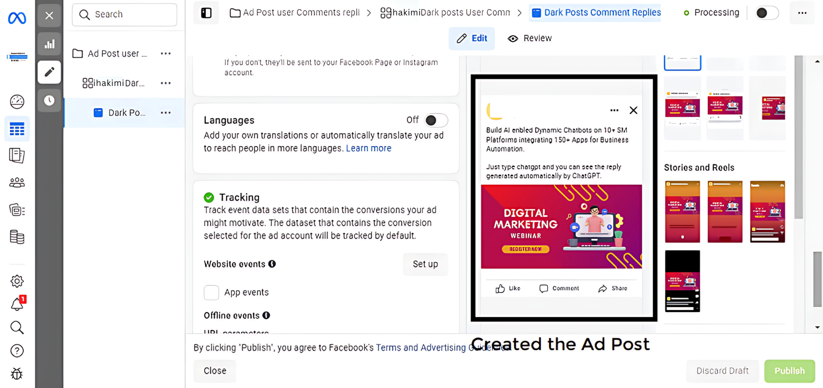 A New Feature has been introduced, where the user comments on your dark post or ads, you can give a Like as well as reply to these User Comments under the comment keyword trigger.
