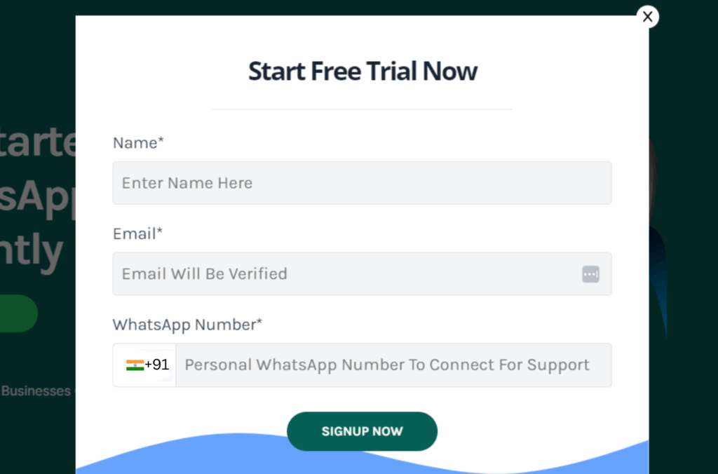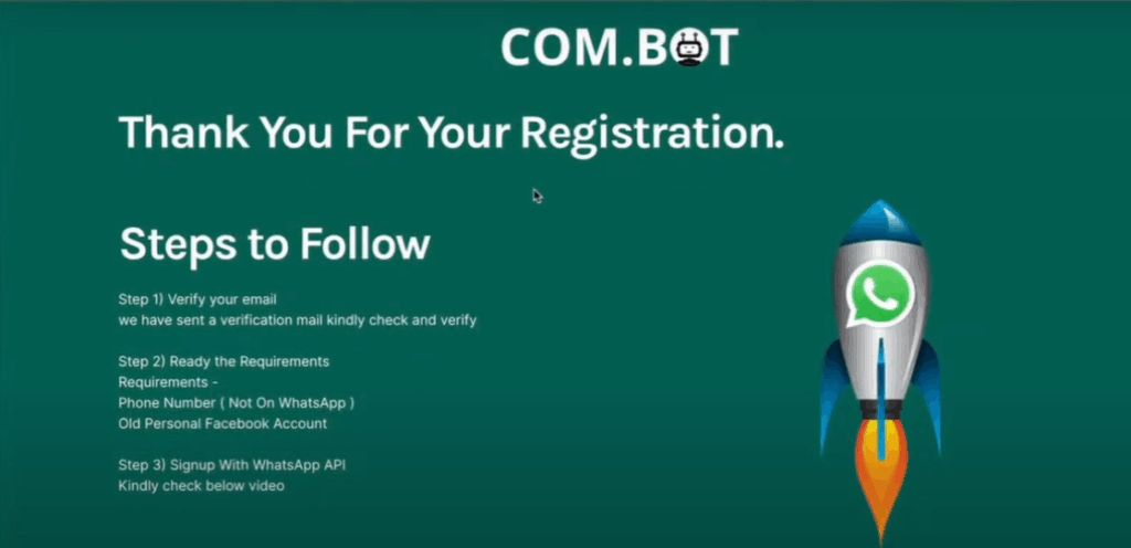 Visit https://www.com.bot/waba and create an account on Com bot. Sign up for the free trial by clicking on the “Start Now” button