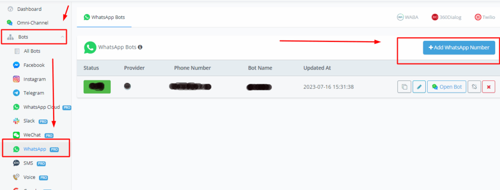 ihakimi now allows its users to connect WhatsApp numbers via Com bot. Com bot is a WABA service provider that provides on On-Premises as well as cloud API access to its users.