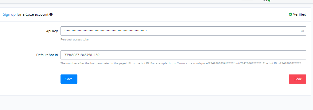 For API Key, from the Coze’s dashboard, click on “Coze API” tab from the left side menu panel.