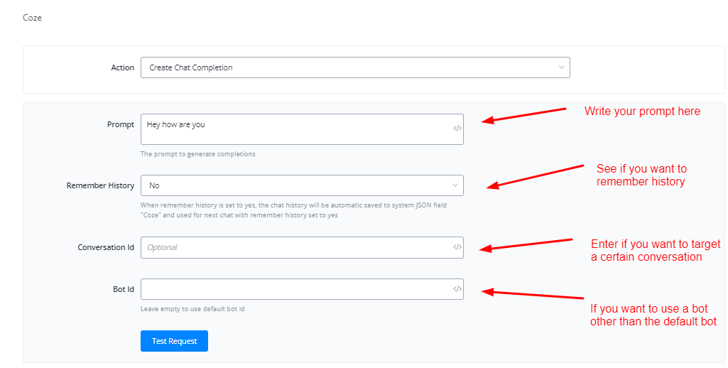 For Default Bot ID, go to your bot model inside Coze, and copy the last set of integers after the /bot/ url key parameter.