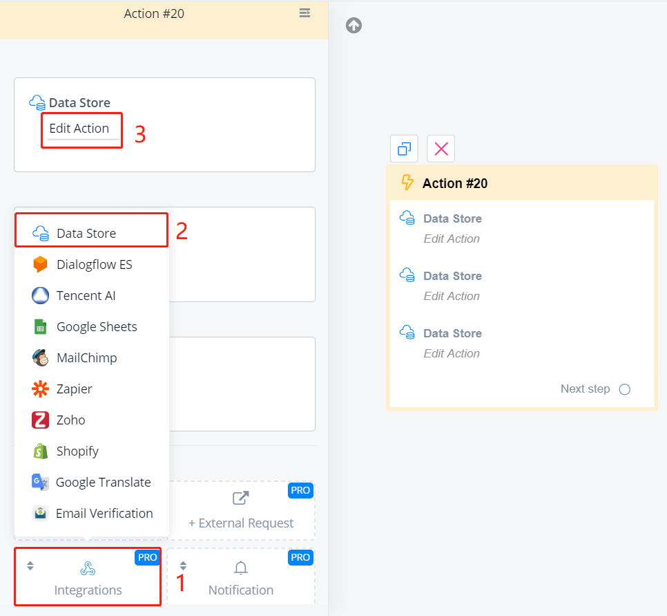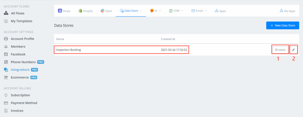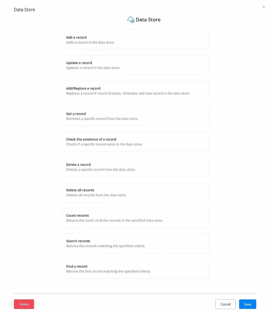 Data Store is a built-in data storage system provided by ihakimi. With Data Store, you can easily add, delete, update, check up your data either manually or in Action steps.