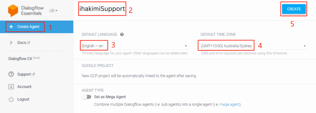 1. Click “Create Agent” on the left sidebar