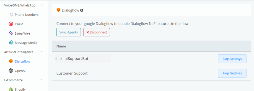 Click the blue “Allow” button to allow ihakimi to get access to your Dialogflow account.