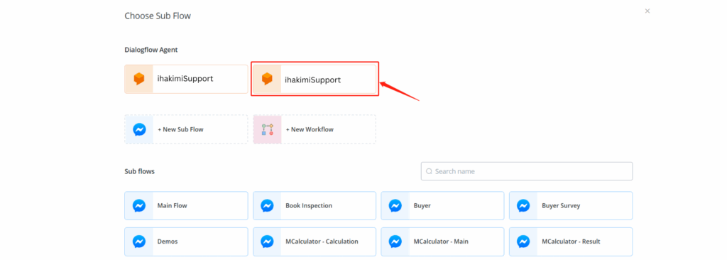 Choose one of your flows that you would like your Dialogflow agent to manage.