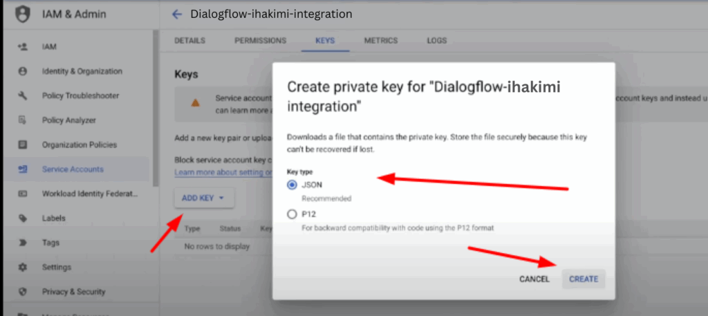 Click on “Create Service Account”. Follow the process below.