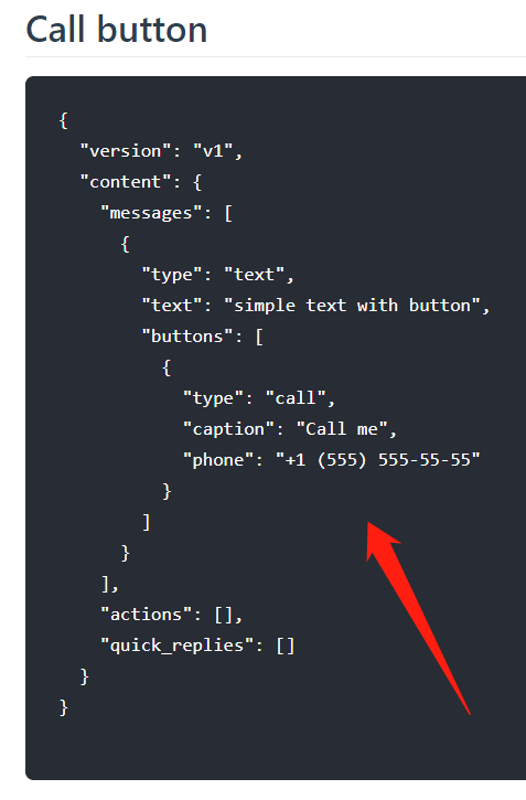 In this case, a call button will be sent. So copy the following code to Dialogflow: