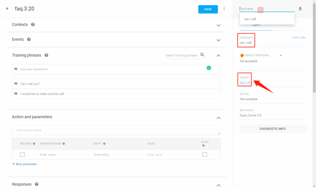 Well done! the bot recognizes that “can I call” is asking faq3.20.