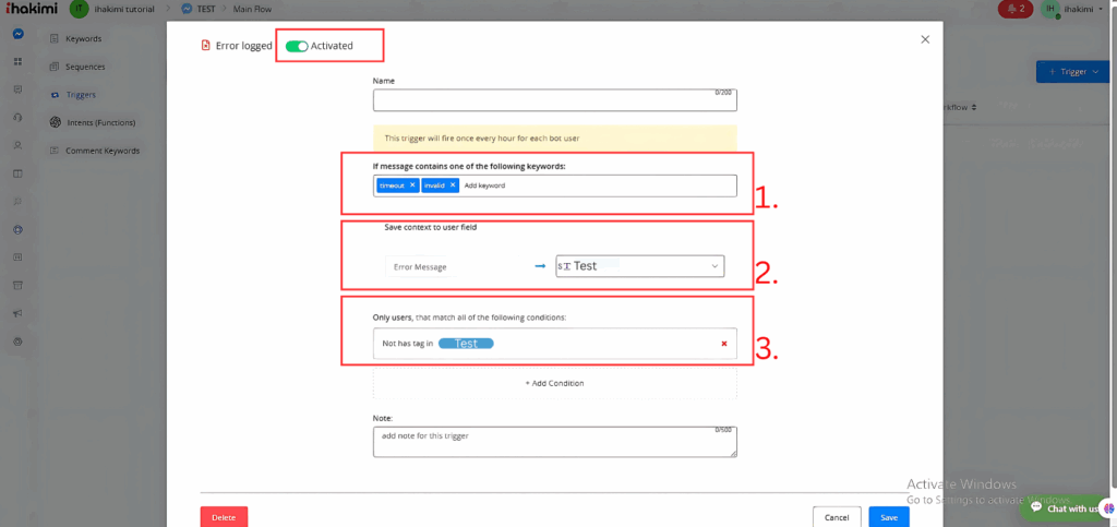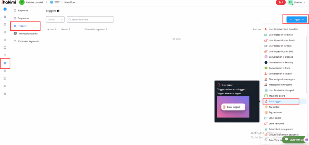 The Error Logged Trigger allows you to automate tasks and receive notifications when specific errors occur in the platform.