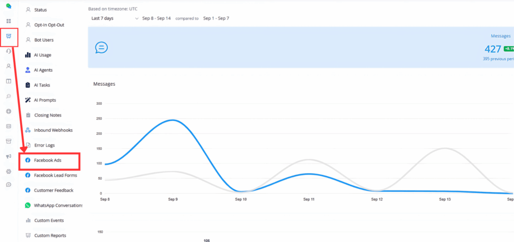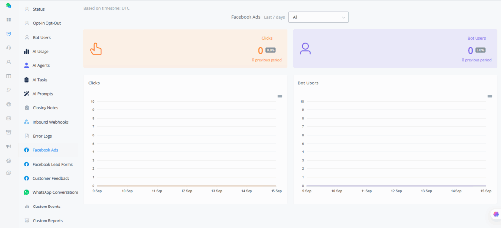 - In the Facebook Ads reports, you can filter the data displayed in the graph by all ads or by a specific ad reference payload, allowing for a more detailed performance analysis.