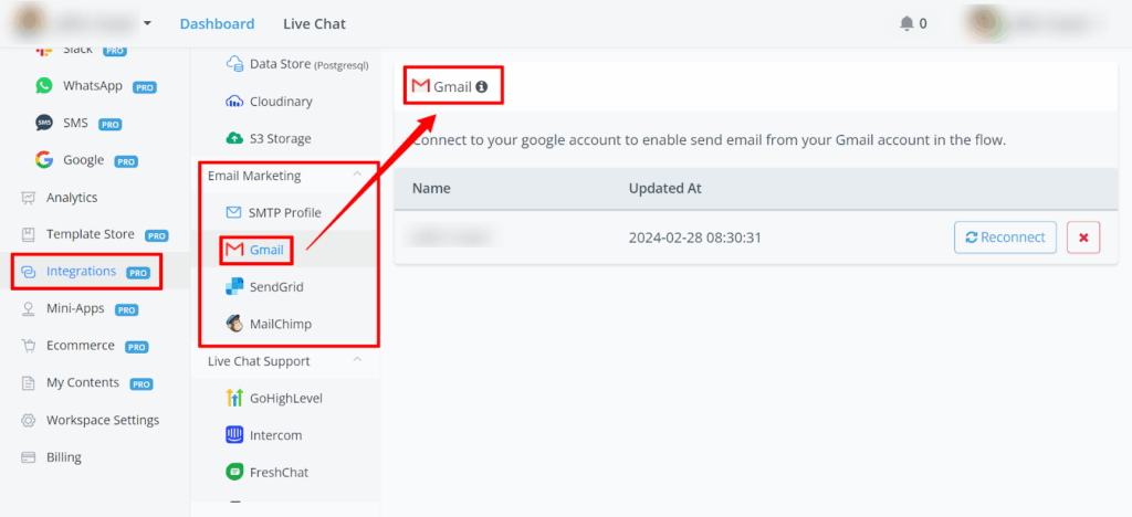 Set up Email Integration within the Integrations section. You’ll find multiple options to choose from for the Email Channel.