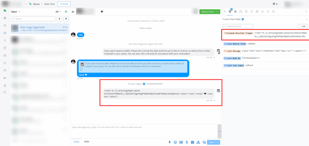 • You’ll see the reaction stored in the Custom User Field with a clear payload structure, including:
