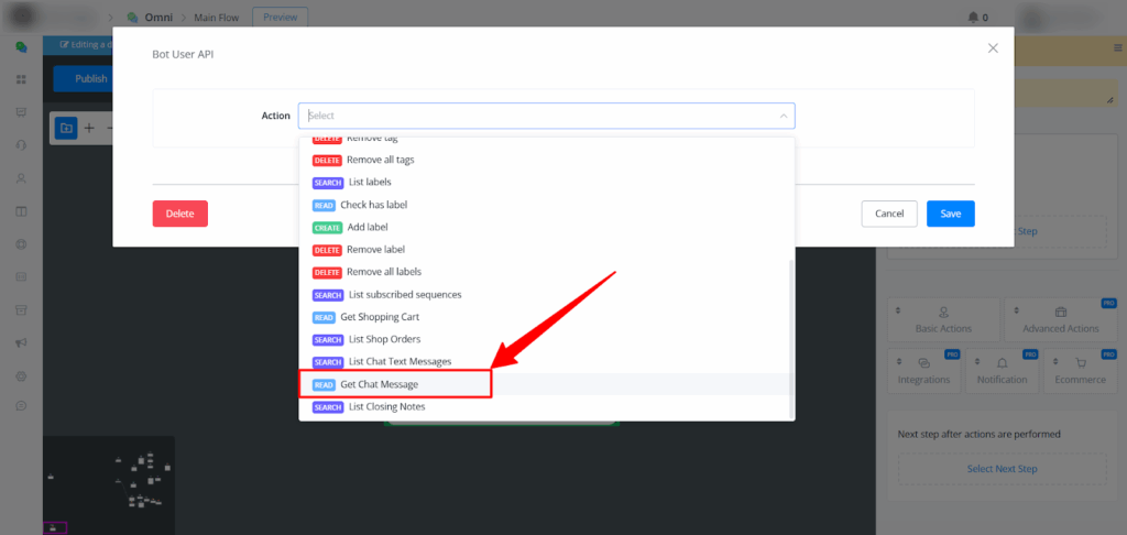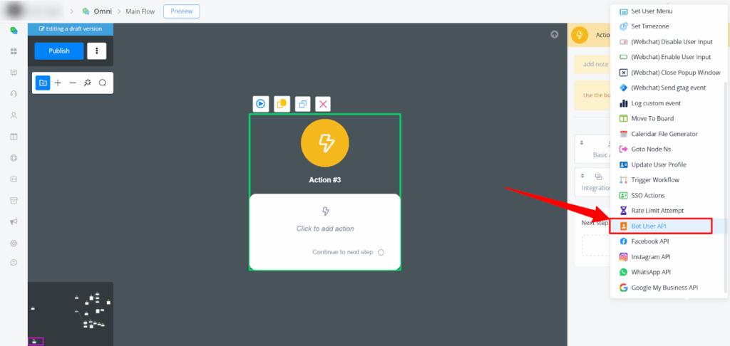 2. Drag and drop the Action Node into your flow and go to Advanced Actions