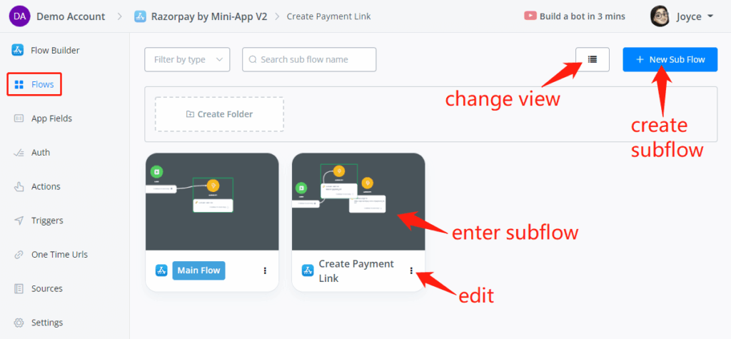 TIP – When bot users first talk to your bot, the main flow is run. But here in the Mini-App system, the main flow doesn’t have any special meaning. It’s just like any other mini-app subflow.