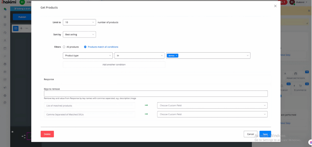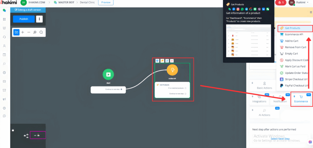The “Get Products” feature allows you to search and manipulate the products listed in your e-commerce store. Below is a step-by-step guide on how to set up this feature: