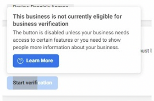 Your Business Manager may not be eligible for verification. In this case, you won’t be able to click the Start Verification button: