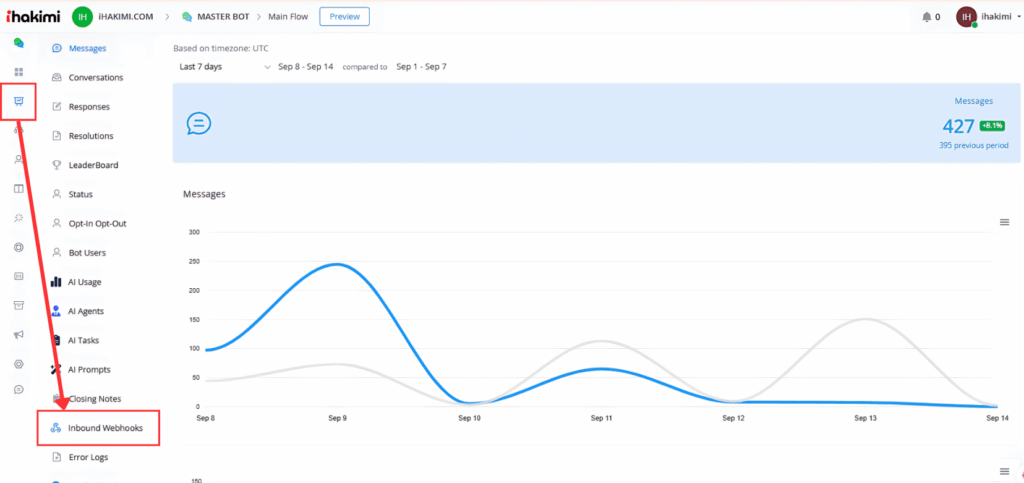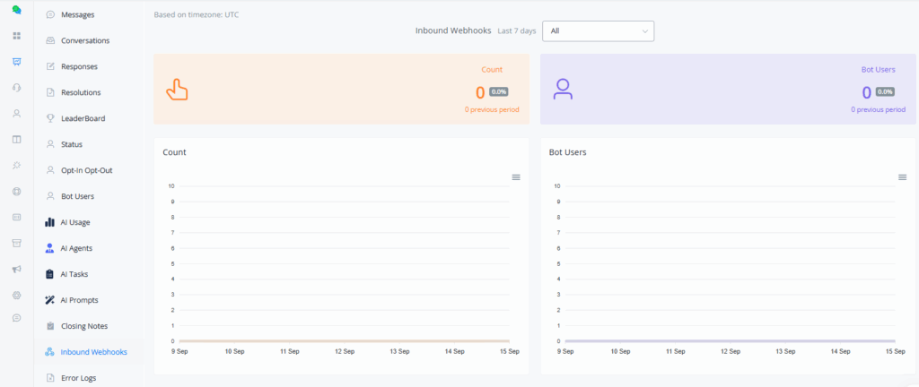 This section provides a detailed analysis of the inbound webhooks recorded by the bot over the last 7 days, with a comparison to the previous period.