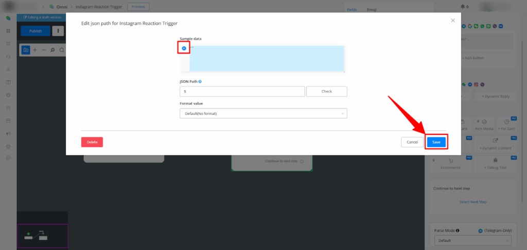 - Assign a name to the field (e.g., Instagram Reaction Payload).