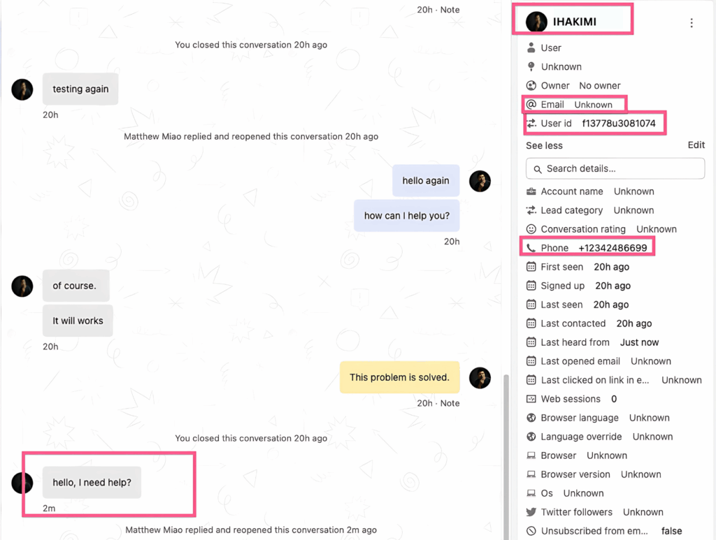 ihakimi will pull the user’s profile, email & phone to create the contact if there is any.