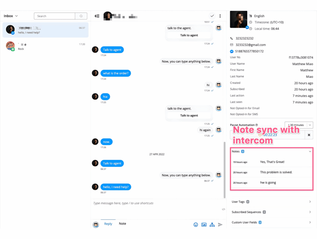 If the intercom agent adds any notes to the customer/conversation, the note content will also sync to ihakimi subscribers