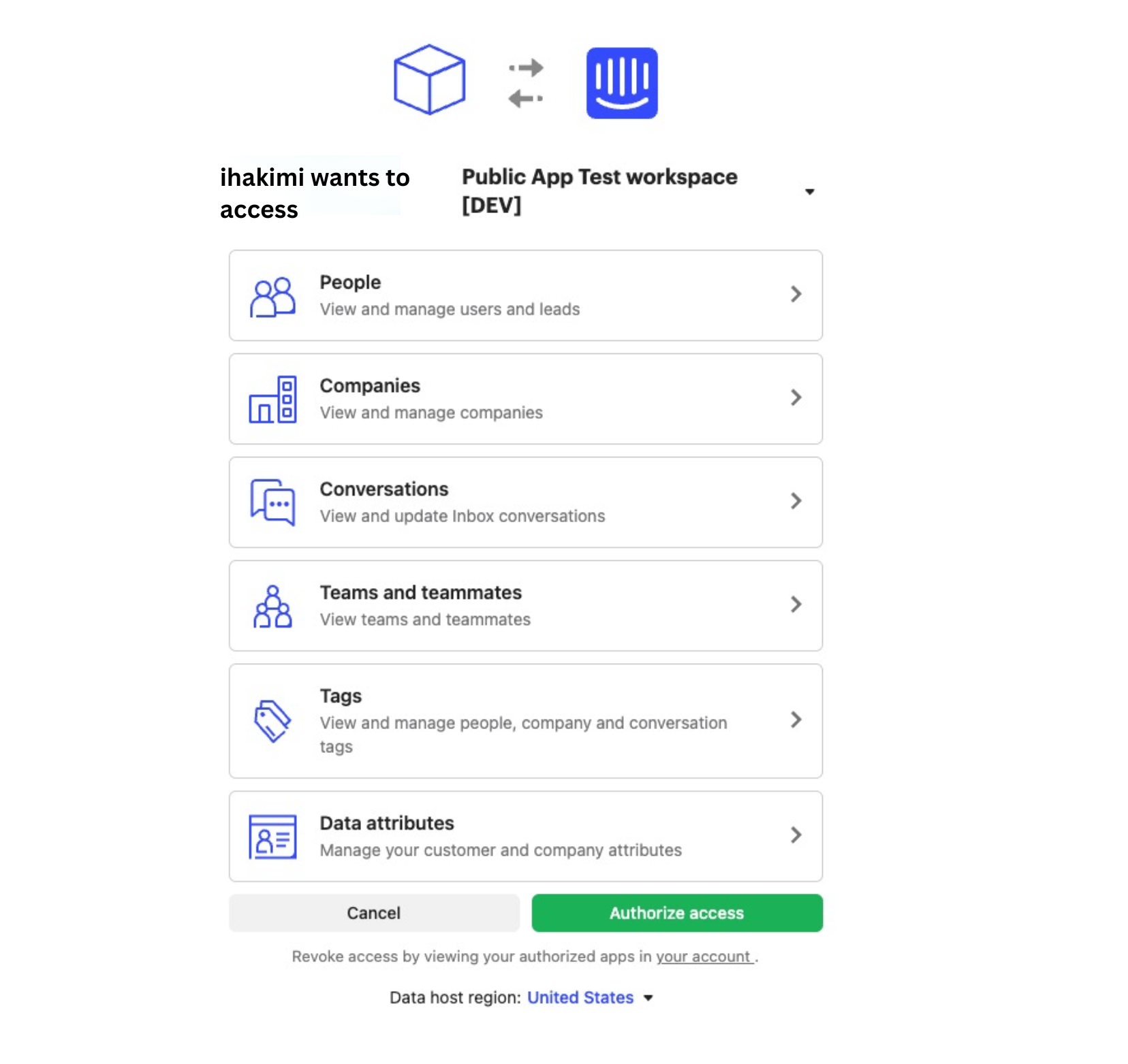 After you click connect intercom button, it will redirect you to log in to your intercom account and then you will see the screenshot above, click “Authorize access” and then you just added this app to your workspace.