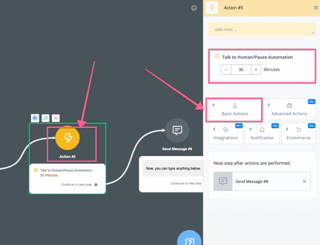 Step 1: Trigger “Talk to Human/Pause automation” anywhere in the flow