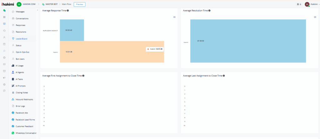 In conversation mode, important metrics related to response, resolution, and closure times are also monitored. These metrics help ensure efficient service and identify areas that need improvement. Below, we detail this information: