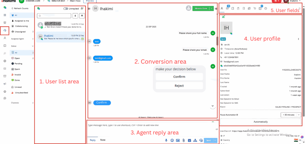 Once you select any of your subscribers you will then get to see the live chat in action. Many options and information are present so let us walk you through them.