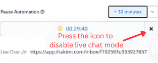 TIP – Whenever agents reply in section 3, you will see the Pause Automation area automatically starts a 30 minutes count down. This means that, the chatbot will stop responding during the time. Agents can add on more time if needed. When time is up, the bot starts to reply again.